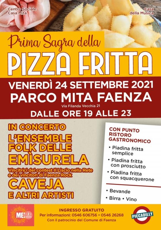 Venerdì 24 settembre dalle ore 19 alle ore 23 il Parco Mita di Faenza si riempie dei sapori della tradizionale pizza fritta, semplice, con prosciutto o squacquerone o con tutt'e due insieme per chi vuole esagerare. Un percorso abbinato ai Parchi che vuole recuperare le tradizioni dei prodotti tipici del territorio, prima tra tutte proprio la pizza fritta, un elemento caratteristico in diverse formule di Faenza e della nostra Romagna, che rischia di perdersi nell'era della globalizzazione dei cibi fast food tutti uguali in ogni angolo del pianeta.