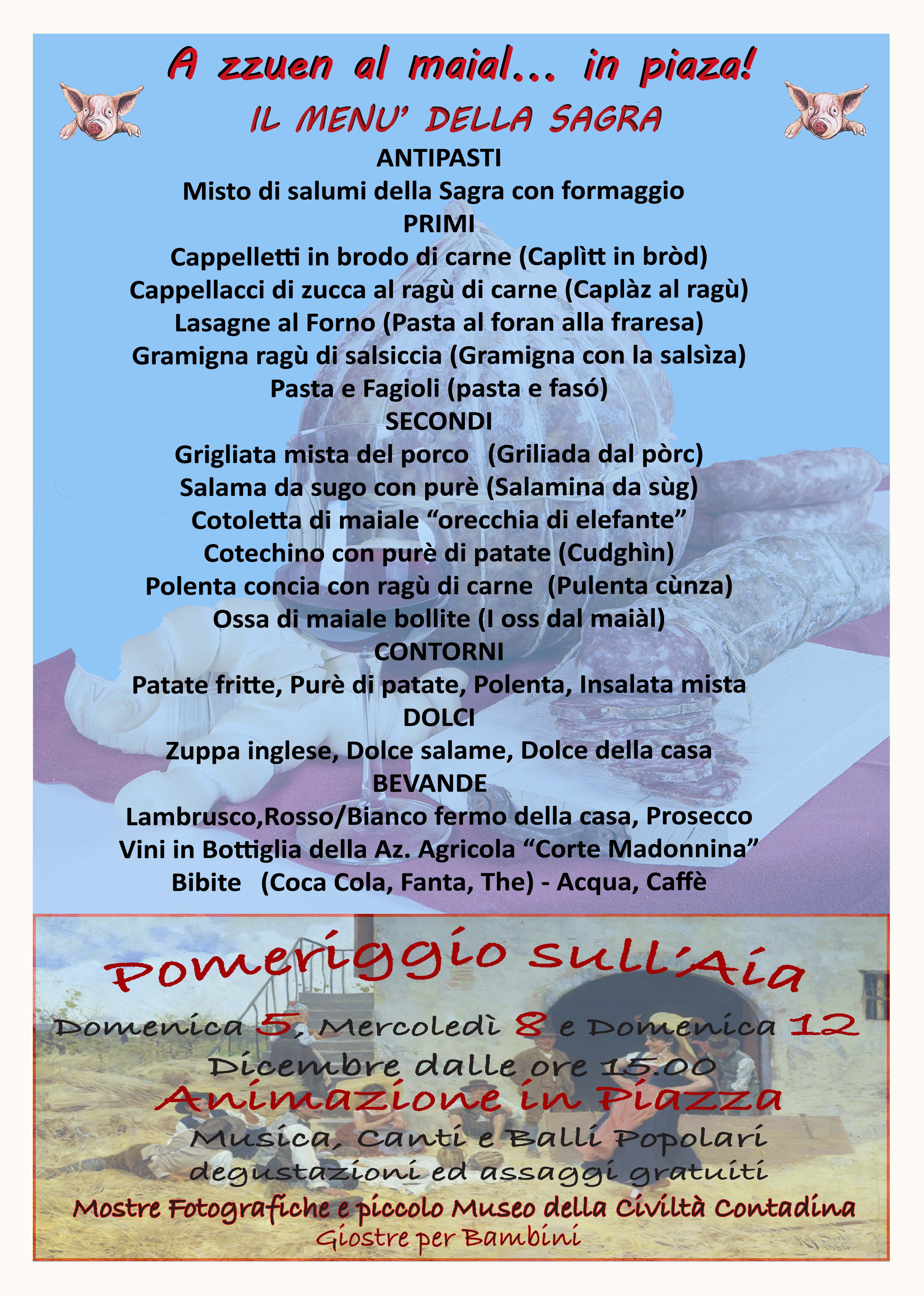 La manifestazione, giunta alla sua 18a edizione, intende riproporre al pubblico USI, COSTUMI e TRADIZIONI propri dell’immagine e dell’identità del territorio della Campagna Ferrarese ponendo in evidenza il particolare valore storico e culturale del “MAIALE” e della sua lavorazione e conservazione per l’economia domestica nelle campagne ferraresi.