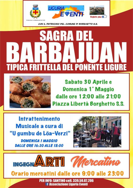 La manifestazione "Sagra del Barbajuan" con la degustazione delle tipiche frittelle del ponente ligure e i mercatini autentici dell'artigianato INGEGNARTI