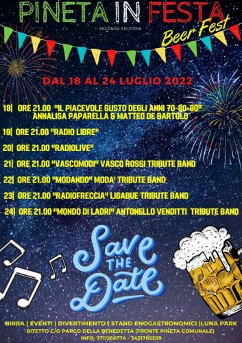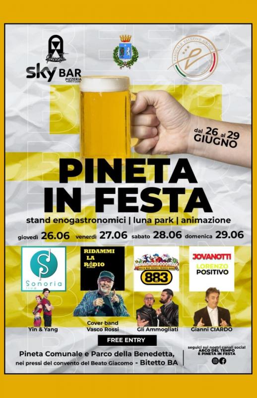 Anche questa estate si terrà la nuova edizione di Pineta in Festa, presso la Pineta comunale di Bitetto, precisamente nel parco antistante la Chiesa della Benedetta.