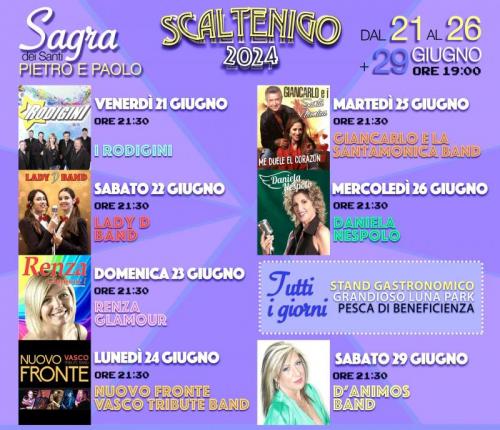 A Scaltenigo, frazione del Comune di Mirano in provincia di Venezia si svolge nei giorni dal 27 Giugno al 02 Luglio 2025 la Sagra dei Santi Pietro e Paolo.