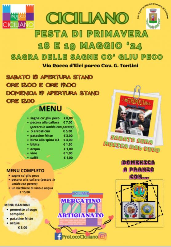 A Ciciliano in provincia di Roma si svolge nei giorni 18 e 19 maggio 2024 la Sagra delle Sagnacce, la Sagra delle Sagne Co gliu Peco