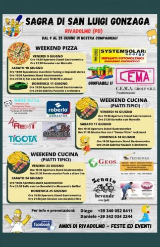 A Rivadolmo, frazione del Comune di Baone in provincia di Padova si svolge nei giorni dal 09 al 25 Giugno 2023 la Sagra di San Luigi Gonzaga.
