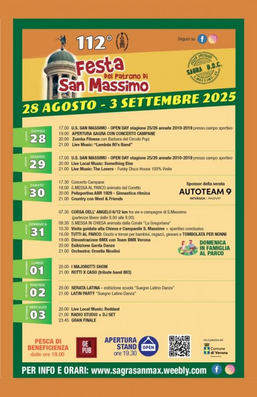 Anche quest’anno è’ arrivato il momento della tradizionale Festa del Patrono di San Massimo. Vi aspettiamo a Verona da Giovedi 28 Agosto a Mercoledi 03 Settembre!