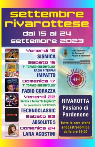 A Rivarotta, frazione del Comune di Pasiano di Pordenone in provincia di Pordenone si svolge nei giorni dal 15 al 24 Settembre 2023 la Sagra "Settembre Rivarottese".
