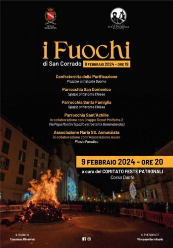 Anche quest'anno assieme a parrocchie associazioni e confraternite il Comitato Feste organizza i Fuochi di San Corrado l'8 febbraio dalle 19.00 in tutta la città e il grande Falò di San Corrado il 9 febbraio alle 20.00 nei pressi della Cattedrale.
