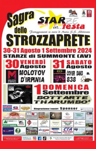 A Starze, frazione del Comune di Summonte in provincia di Avellino si svolge nei giorni 30, 31 Agosto e 01 Settembre 2024 la Sagra dello Strozzaprete - Starze in Festa.