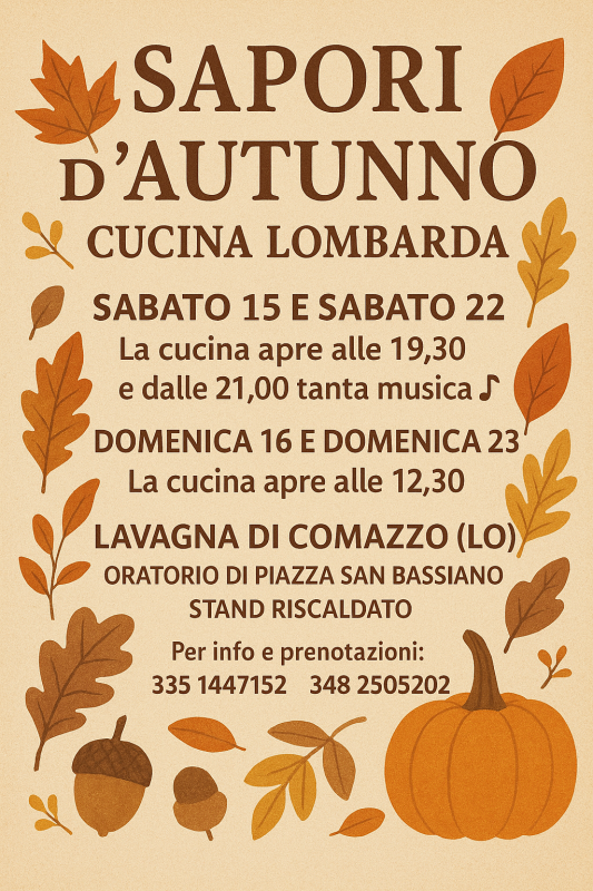 Torna la nostra amata sagra autunnale a Lavagna di Comazzo (LO)!Due weekend per riscoprire i sapori autentici della cucina lombarda e vivere insieme l’atmosfera calda e accogliente dell’autunno.
