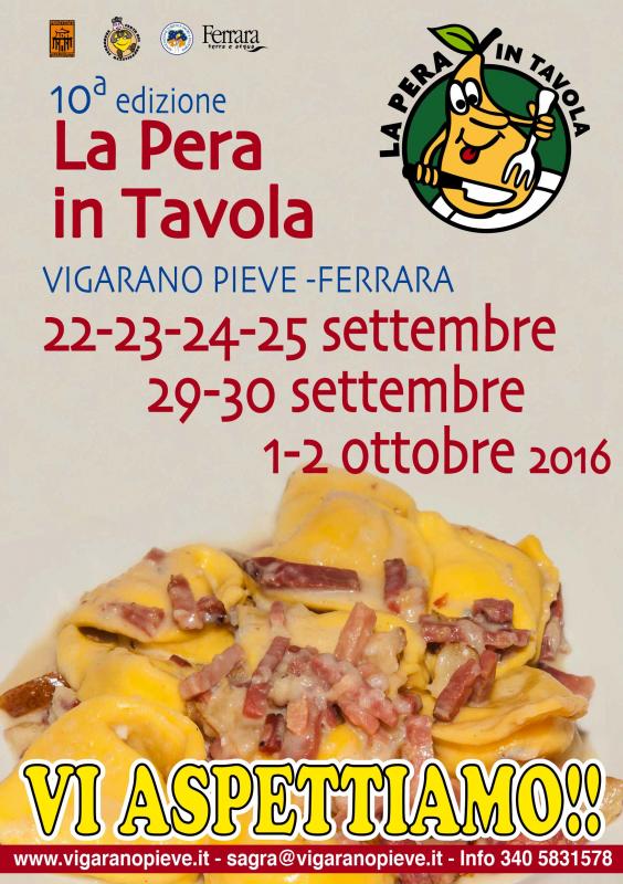 10° Sagra della Pera a Vigarano Pieve dal 22 al 25 settembre e dal 29 settembre al 2 ottobre 2016.
