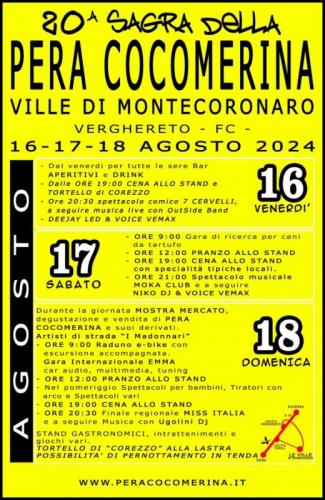 La sagra, nata alcuni anni fa da un’idea dell’Associazione Culturale Pro Ville, in collaborazione con la Comunità Montana dell’Appennino Cesenate ed il Comune di Verghereto, è sorta per festeggiare la pera cocomerina, pera di piccolo formato, profumata, dalla caratteristica forma rotondeggiante e dal colore rosso che sopravvive solo su una trentina di piante in una ristretta area a breve distanza dal Monte Fumaiolo.