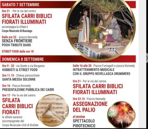 A Bellusco (MB) va in scena il 55° Palio di Santa Giustina con la tradizionale sfilata dei carri biblici fiorati.