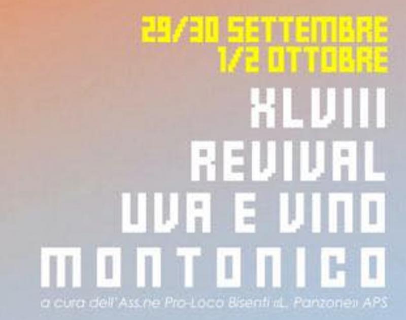 Il 48° Revival Uva e Vino Montonico si svolgerà come da tradizione a Bisenti il 29-30 Settembre 1-2 Ottobre 2022. L'evento è uno dei più longevi della nostra Regione ed è organizzato dalla Pro Loco"L.Panzone" di Bisenti.
