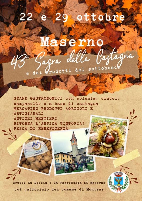 due Domeniche che Maserno dedica alla castagna e ai prodotti autunnali del territorio. Mercatino tradizionale, musica itinerante e prodotti tipici da gustare nella piccola ma accogliente frazione montesina.