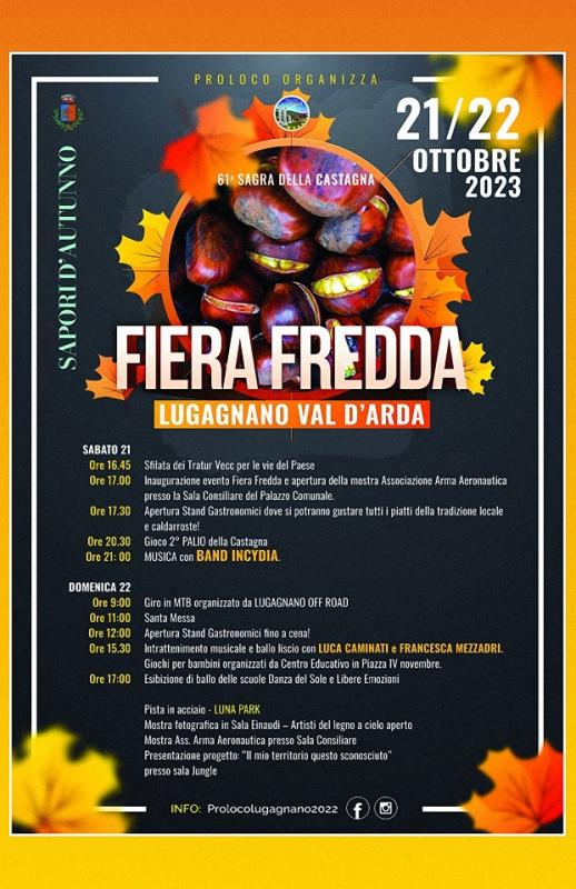 Siete tutti invitati alla 61a edizione della Sagra della Castagna - Fiera Fredda a Lugagnano Val d'Arda in data 21 e 22 Ottobre 2023: