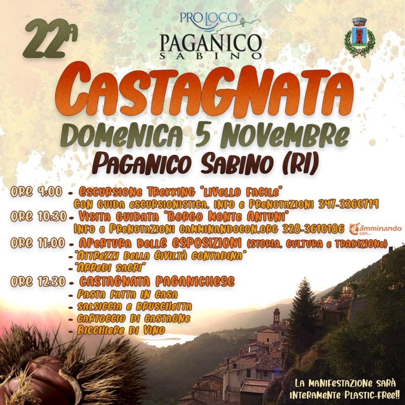 E' Tempo di Sagra della Stagna a Paganico Sabino in provincia di Rieti si svolge nella giornata di 5 Novembre 2023 la 22a edizione della Castagnata Paganichese.