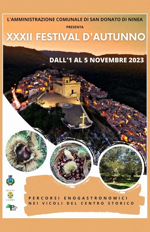 La manifestazione si svolgerà nei giorni dal 01 al 05 Novembre 2023 nell’antico borgo Calabrese di San Donato di Ninea (CS), incorniciato da monti maestosi all’interno del Parco Nazionale del Pollino, panorami incantevoli e soprattutto da immensi castagneti.