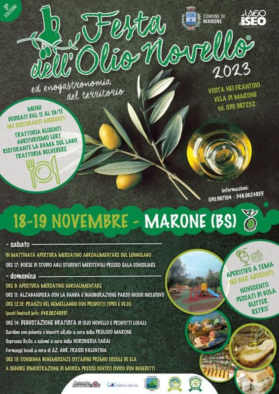 Il 18 e 19 Novembre 2023 si svolge la Festa dell'Olio Novello a Marone. Expo dedicato alle eccellenze olivicole del Lago di Iseo e Dop Laghi Lombardi