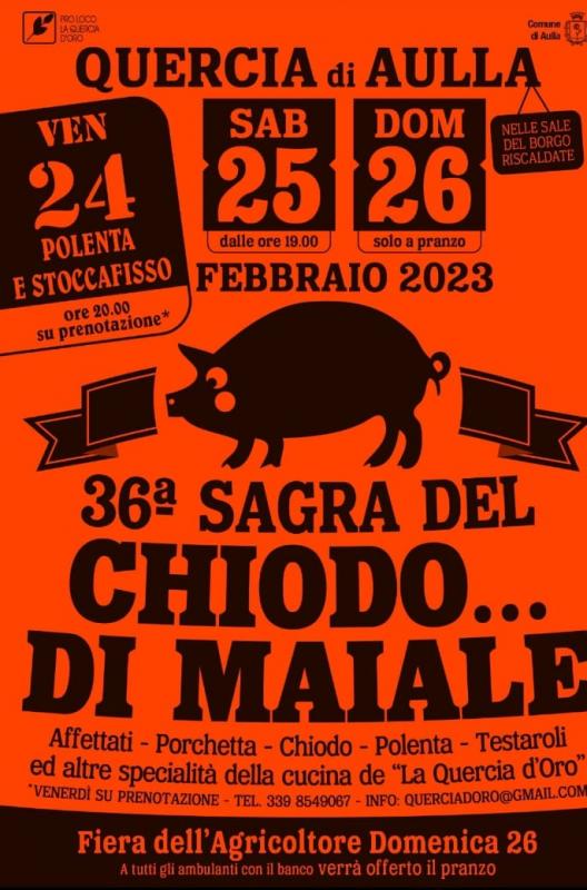 La Festa del Chiodo di maiale si svolge dal 24 al 26 febbraio 2023 a Quercia - Aulla (MS).