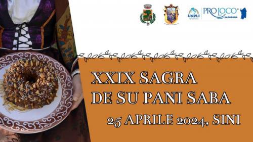 Il 25 Aprile si svolge a Sini una importante festa dedicata al tipico dolce locale, su pani saba, un pane a base di mosto cotto, per la guarnizione del quale si utilizzano le mandorle, l’uva passa e spezie varie.