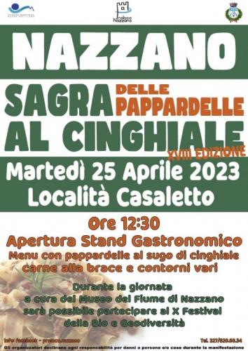 organizzata come sempre in maniera impeccabile dalla Pro Loco, la Sagra delle Pappardelle al Cinghiale a Nazzano si svolge presso loc. Casaletto, il 25 Aprile in uno scenario mozzafiato con vista sul Tevere.