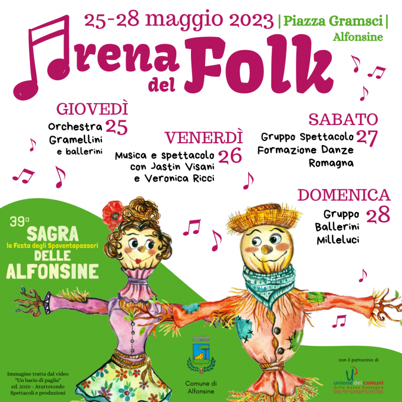 I famosi spaventapasseri accoglieranno di nuovo il pubblico ad Alfonsine lungo il percorso cittadino che si snoda da piazza della Resistenza a piazza Gramsci (che ospiterà anche attività per i più piccoli), assieme con numerose proposte gastronomiche e artistiche e a vivaci momenti di aggregazione.