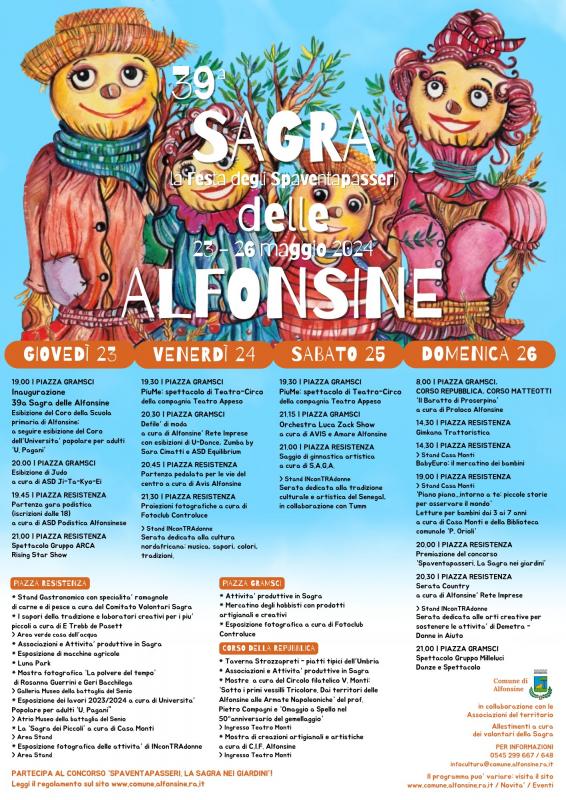 Da giovedì 23 a domenica 26 maggio torna la Sagra delle Alfonsine, che giunge quest'anno alla sua 39esima edizione.