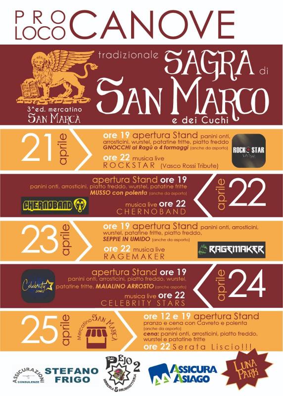dal 24 al 30 aprile 2024 , con mercatino,"SAN MARCA, stand gastronomico e musica live