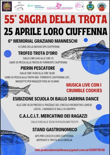- Trofeo TROTA D'ORO, dalle ore 6.45 alle ore 13.00, gara di pesca alla trota in torrente Ciuffenna.