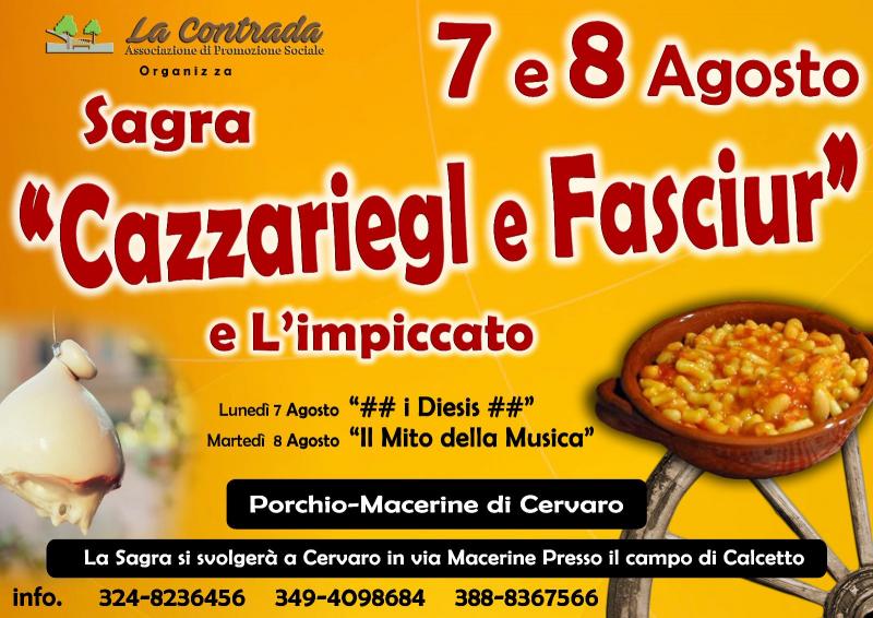 L'associazione di promozione sociale "La Contrada" organizza la sagra dei "Cazzariegl e Fasciur" che si terrà a Cervaro in via Macerine presso il campo di calcetto.