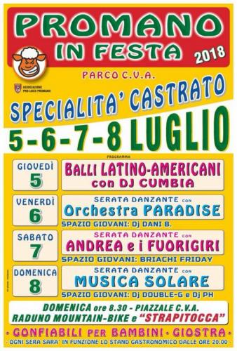 La Sagra del Castrato di Promano è una festa storica dove si può degustare il castrato cucinato secondo la tradizione locale e passare serate con musica e intrattenimenti.