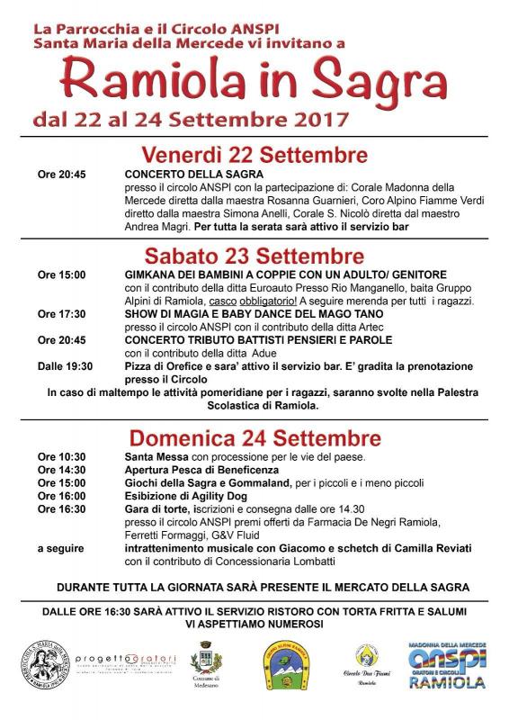Dal 22 al 24 settembre 2017 si svolge la Sagra di Ramiola, frazione del Comune di Medesano (PR).