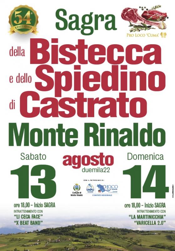La sagra che si svolge da più 50 anni il secondo sabato e la seconda domenica di agosto a Monte Rinaldo e che quest’anno arriva alla 54^ edizione, promuove la storia di questo luogo e le sue tradizioni, che sono identità della cultura del territorio da tutelare e valorizzare .
