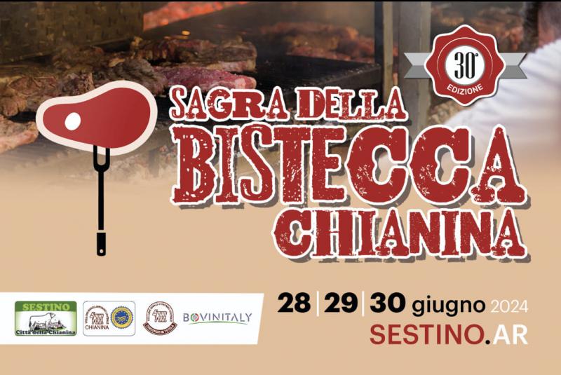 A Sestino in provincia di Arezzo si svolge nei giorni dal 28 al 30 Giugno 2024 la 30a Edizione della Sagra della Bistecca Chianina.