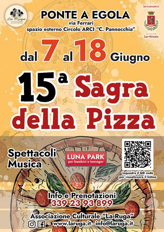 Dal 5 al 16 Giugno 2024 arriva la 16a edizione della Sagra Della Pizza a Ponte a Egola in Via Ferrari Spazio esterno Circolo Arci C. Pannocchia