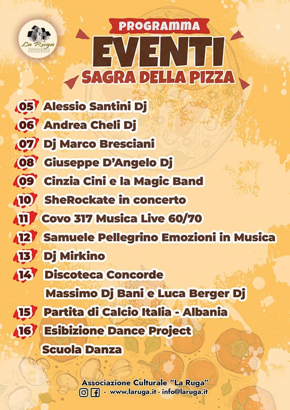 La sagra sarà aperta tutte le sere cena dalle 20, Sabato e Domenica ore 19,30