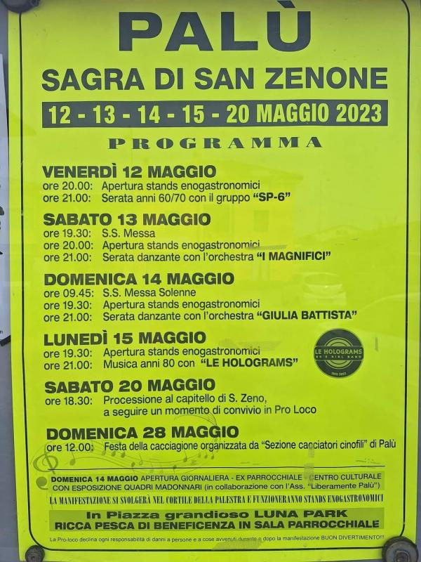 Sagra di san Zenone a Palu 12, 13, 14,15 maggio 2023