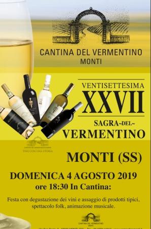 La 27a edizione della Sagra del Vermentino di Monti si svolgerà Domenica 04 Agosto 2019. La Sagra del Vermentino si svolge nel Comune di Monti, sede dell’omonima cantina che organizza l’evento e che unisce tutta la Gallura.