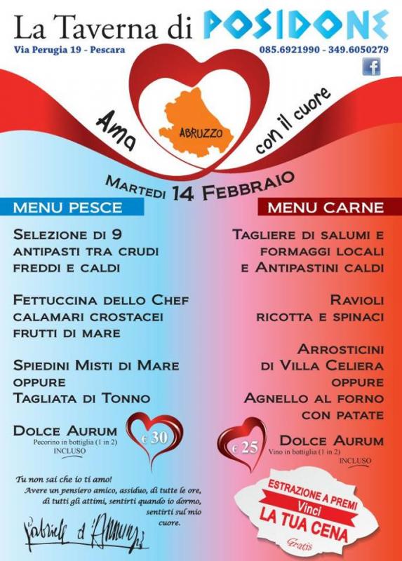 San Valentino Alla Taverna di Posidone martedì 14 febbraio 2017