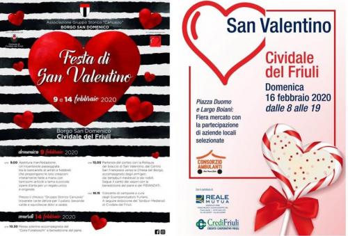 Domenica 9 e Venerdì 14 febbraio 2020 si svolge FESTA DI SAN VALENTINO in Borgo San Domenico, mentre domenica 16 febbraio Fiera di SAN VALENTINO a Cividale del Friuli.