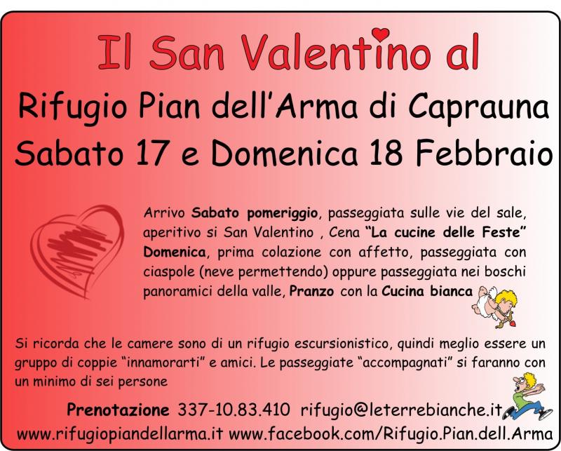 E come cominciare meglio la stagione se non celebrando la festa indiscussa dell’amore con un fine settimana al Rifugio Pian dell’Arma per “innamorarsi” di questo territorio, per stare in montagna a godersi un San Valentino unico ed inconfondibile.