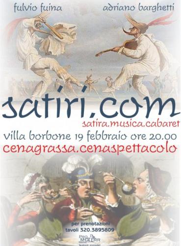 Domenica 19 febbraio 2017, dalle ore 19:30, per Carnevale c'è Satiri.Com, la cena spettacolo a Villa Borbone Viareggio con Fulvio Fuina (da Zelig) ed il mitico Adriano Barghetti.