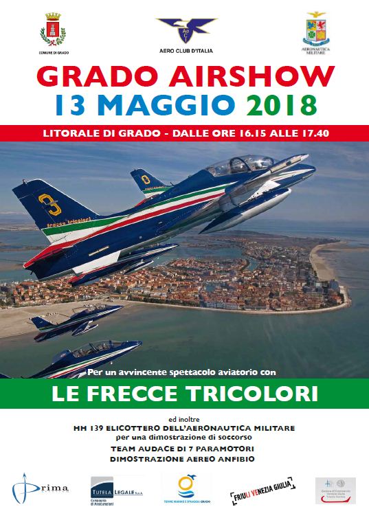Torna in primavera il Grado Air Show 2018. Si rinnova anche quest'anno, domenica 13 maggio 2018, l'appuntamento con lo spettacolo delle Frecce Tricolori che sfrecceranno sopra il litorale di Grado.