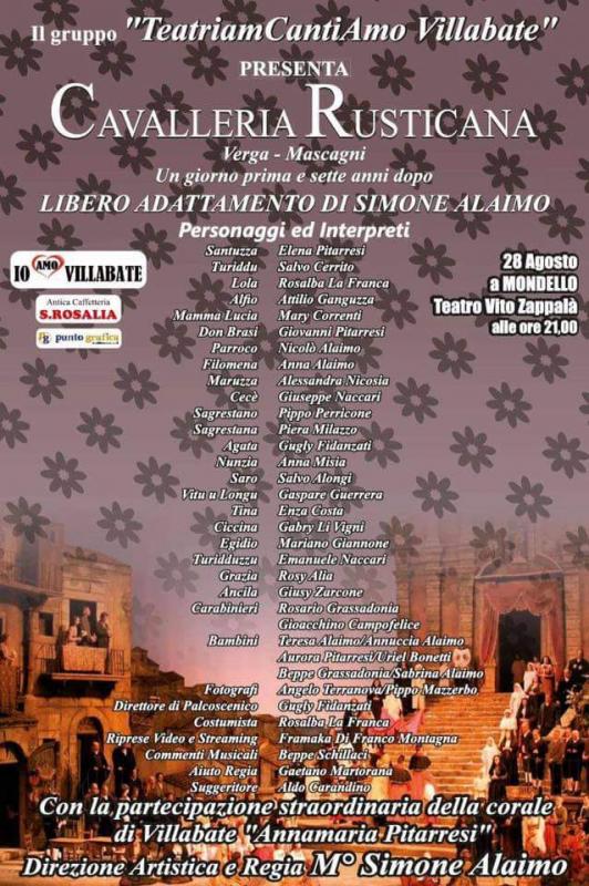 Domenica 28 agosto, alle ore 21,00, il Teatro Vito Zappalà di Mondello ospiterà la Cavalleria rusticana, opera in un unico atto di Pietro Mascagni tratto dalla novella omonima di Giovanni Verga, in un libero adattamento del Maestro Simone Alaimo, che ne cura anche la direzione artistica e la regia.