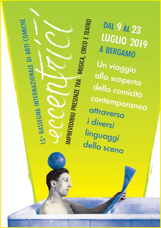 Anche quest’anno Eccentrici cambia forma senza tradire la sua essenza, portando sempre con sé entusiasmo e divertimento. Gli Eccentrici tornano a stupire Bergamo con la loro carica eversiva in tre appuntamenti – tutti a luglio – alla scoperta della comicità contemporanea attraverso i diversi linguaggi della scena. Spettacoli lontani dai cliché televisivi, perennemente in bilico tra musica, virtuosismi e monologhi. Performance all’insegna dell’ironia e del grottesco, scelte tra le più interessanti del teatro comico internazionale e adatte al pubblico di ogni età e nazionalità. Artisti imprevedibili e multiformi, o più semplicemente… Eccentrici!