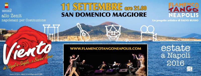 Domenica 11 Settembre 2016, alle ore 21.00, Flamenco Tango Neapolis sarà in scena con lo spettacolo “Viento – Da Napoli a Siviglia… a Buenos Aires” nel cortile grande del complesso monumentale di San Domenico Maggiore, in occasione dell'importante rassegna "Estate a Napoli" organizzata dal Comune di Napoli.
