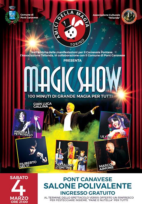 La ‘spettacolare’ serata, organizzata dall’Associazione Culturale “Tellanda” in collaborazione con il Comune di Pont Canavese, vedrà avvicendarsi sul palco di Via Soana, 32, numeri di Magia per tutti, grandi e piccini.