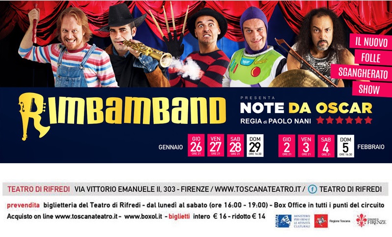 Dopo i successi fiorentini e nazionali dei due precedenti spettacoli (“Il sol ci ha dato alla testa” e “Rimbamband Show”), “Note da Oscar” è il nuovo, folle, sgangherato show della Rimbamband, nel quale gli estrosi “rimbambini” sono alle prese col cinema e la sua magia, questa volta guidati da quel grande mimo internazionale che è Paolo Nani, anche lui sempre festeggiatissimo sul palcoscenico di Rifredi.