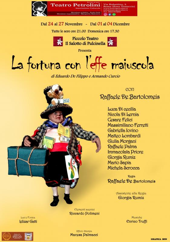 Debutta al Teatro Petrolini di Roma, dal 24 novembre al 4 dicembre, LA FORTUNA CON L’EFFE MAIUSCOLA, spettacolo di Eduardo De Filippo e Armando Curcio, diretto da Raffaele De Bartolomeis.