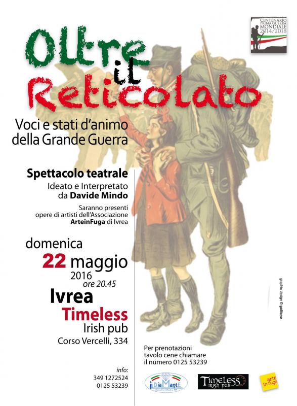 Allo spettacolo “Oltre il reticolato” e’ abbinata una esposizione curata da Galliano Gallo, prestigioso designer canavesano, con opere di artisti dell’ass. ArteinFuga ispirate alla Prima Guerra Mondiale che ricorderanno i Caduti della Città di Ivrea.