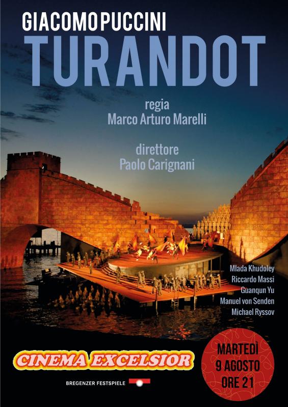 La scenografia di Marco Arturo Marelli fa uso di simboli del potere cinesi ed è ispirata dall’opera umana più lunga al mondo: la Grande Muraglia Cinese. Il muro di Bregenz è attraversato da squadroni di guerrieri di terracotta, oltre duecento in tutto, alcuni di loro altissimi, altri semi sommersi nell’acqua.